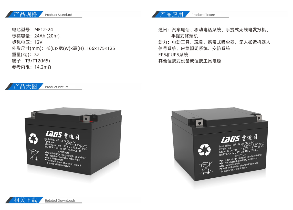 雷迪司MF12-24 12V 24AH閥控密封式鉛酸免維護(hù)蓄電池