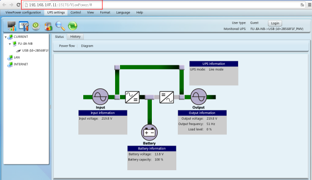 1、電腦IP:192.168.107.11,安裝ViewPower文本或標準版本運行。打開IE或fireFox,然后從用戶電腦(IP 192.168.104.11)輸入網(wǎng)絡地址遠程監(jiān)視器。例如,輸入“http://192.168.107.11:15178/ViewPower/”。、